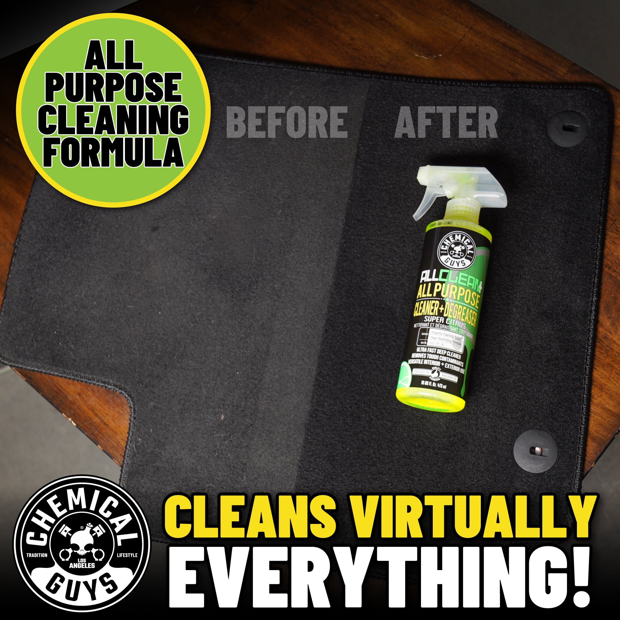All Clean+ Citrus Based All Purpose Super Cleaner has a concentrated formula that tackles sticky grease and oil stains. Dilute to clean various surfaces. including plastic. vinyl. carpets. and more.