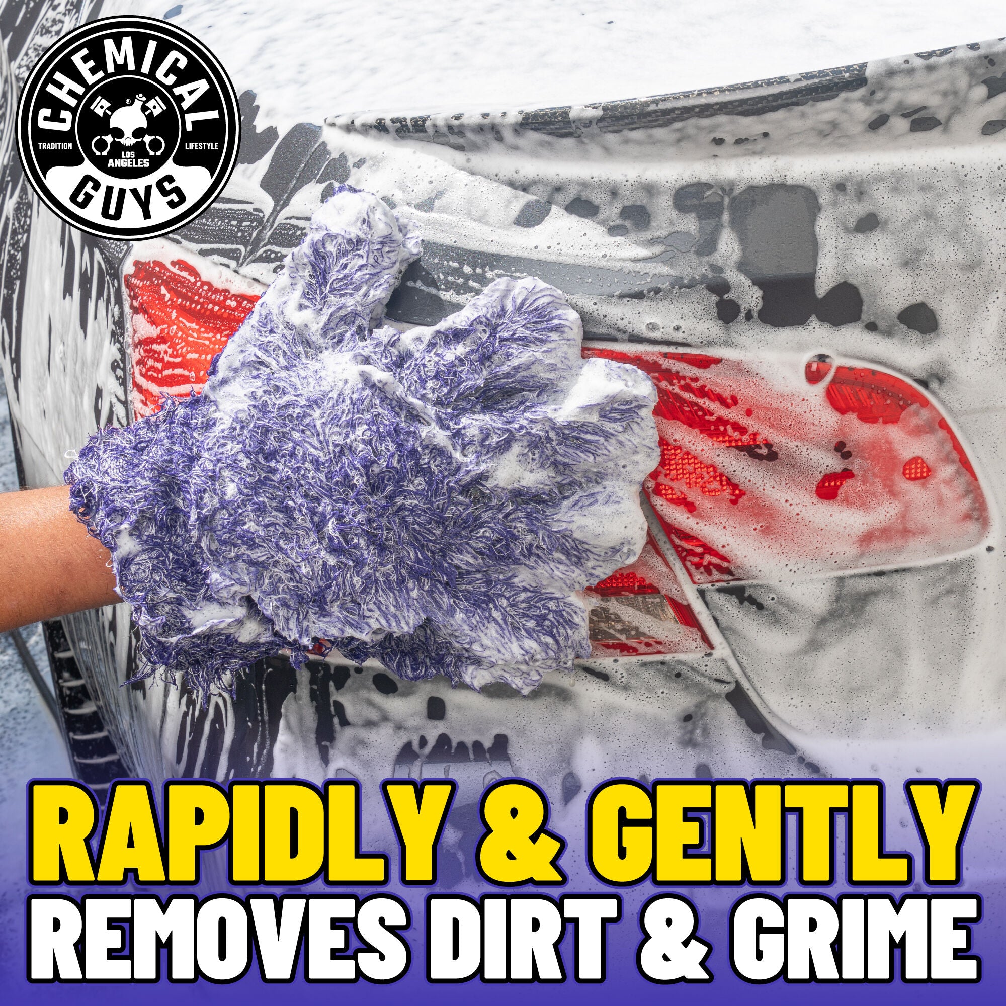 Maximize your car wash with the Furry Five Finger Detailing Mitt: a dual-pile microfiber glove with thick sponge core. designed for reaching tight spots and minimizing scratches.