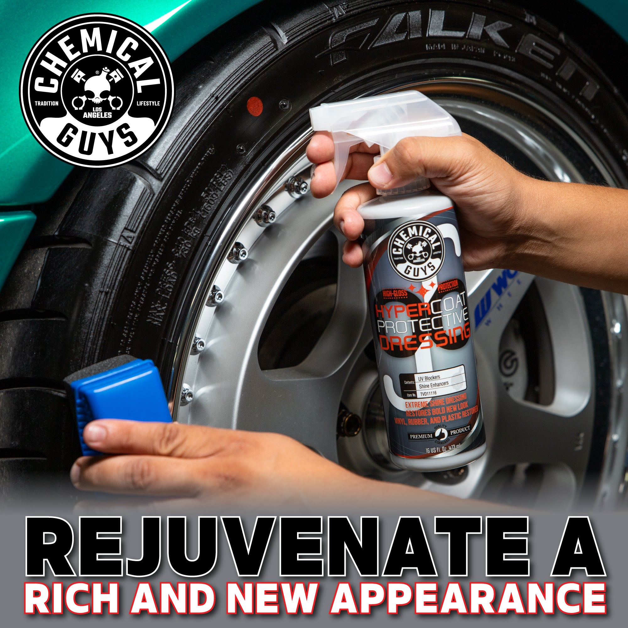 G6 HyperCoat uses proprietary technology to restore and protect dried-out vinyl. rubber. and plastic car parts with a brand-new look. a bold and brilliant wet shine. and durable protection against damaging UVA and UVB rays.