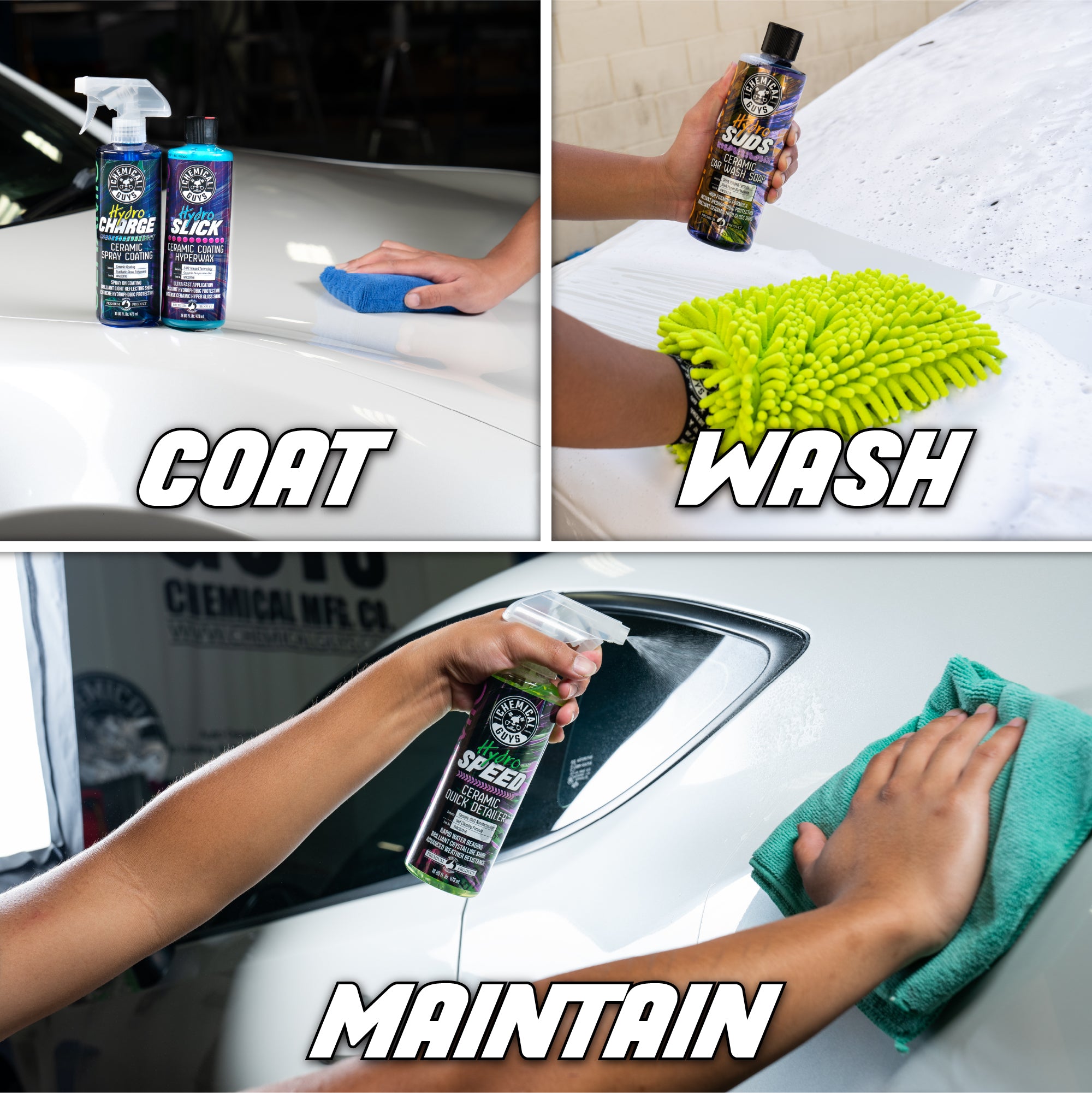 Introducing HydroSpeed: the ultimate car spray infused with hydrophobic polymers and SiO2 nanoparticles. Easy to apply. it delivers a stunning shiny finish. shields your vehicle against all weather conditions. and promotes rapid water beading.