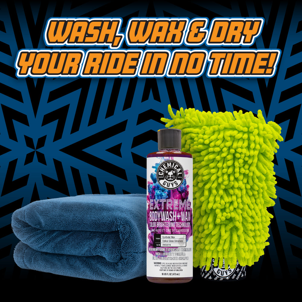 Designed for those who want maximum results with minimal effort: With a Chenille Wash mitt that gets the job done without scratching your paint. a premium car wash soap that not only cleans but also leaves a protective wax layer. and a massive microfiber drying towel that soaks up over a gallon of water. this kit has what you need to wash. protect. and dry your car in one easy session.