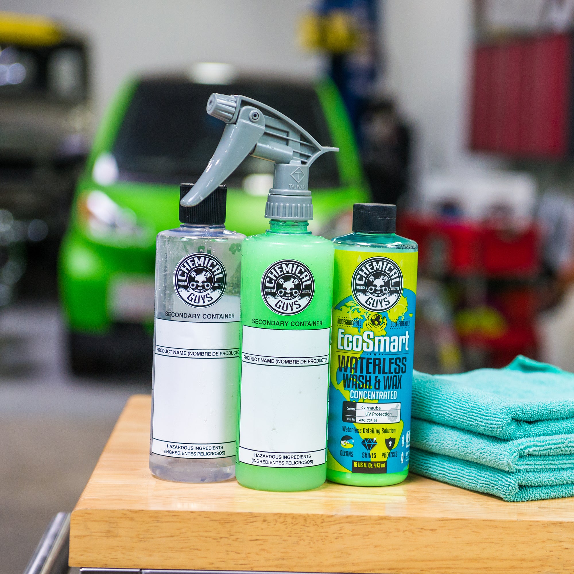 The Secondary Container Dilution Bottle is perfect for professional detailers and hardcore enthusiasts who need to mix and dilute chemicals from full-strength gallon jugs. Get the exact strength you want right in the spray bottle. They’re crystal clear for easy visual level checks and make your detailing job faster and easier.